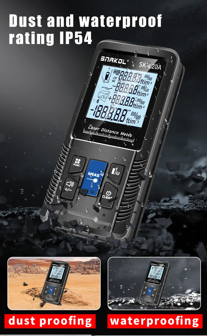 Cinta métrica láser, medidor de distancia, múltiples funciones de medición, 120m